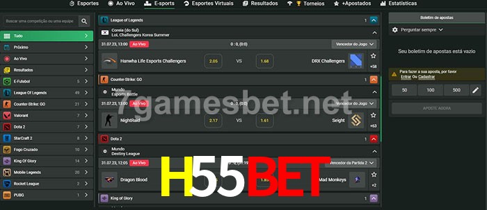 A aposta H55Bet oferece aos jogadores a experiência mais conveniente de apostas em eSports!